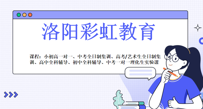 1、洛阳彩虹教育:洛阳学校拥有27年丰富的洛阳本地教育培训行业经验,提供从小学三年级至高中三年级的班课、个性化、全日制及托管等全科课外辅导。 2、龙文教育:以其严谨的教学态度和科学的教学方法,帮助学生在高三阶段取得优异成绩。 3、学大教育:是一所专门从事高考文化课补习、艺术生文化课突击的全日制封闭式学校。学校拥有教学专业化、管理规范化、服务标准化的特点,致力于为艺考生提供全方位的文化课辅导服务。 4、卓思教育:卓思教育成就未来,专注于小初高全科辅导,深耕教育多年,名师汇聚,升学无忧。 5、π学教育:专注于小初高全科辅导(语文,数学,英语,物理,化学,历史,艺考全日制),以π之名,重塑教育的温度与理性。 6、昂立智立方教育:专门针对中小学一对一、一对二、一对三、一对六、艺术生文化课集训、高考冲刺、高考复读等课程辅导。 7、星火教育:是一家专注于为6-18岁中小学生提供辅导及中高考冲刺教学的教育机构。星火教育机构开设了一对一及小班教学模式,坚持个性化教学方案。星火教育师资力量雄厚,建立了覆盖全年级全学科的教学体系。 8、戴氏教育:围绕中学小学生提供单科和全科全托的一对一培训辅导服务,各年级各学科测评和学情诊断帮助教师了解学生的学习状况,从而定制出合适的学习方案。更好的为学生提升学科成绩。 9、聚能教育:是一家专注于K12一对一个性化课外辅导的专业机构。北京聚能教育集团自2000年成立以来,目前未学生提供优质的一对一教学方案。 10、金博教育:专注于与小初中各学科一对一辅导培训,高三全日制,高考冲刺班、高考复读、高三艺术生(美术、舞蹈、体育、播音主持、声乐等)文化课集训等课程。 以上排名不分先后!仅供参考!